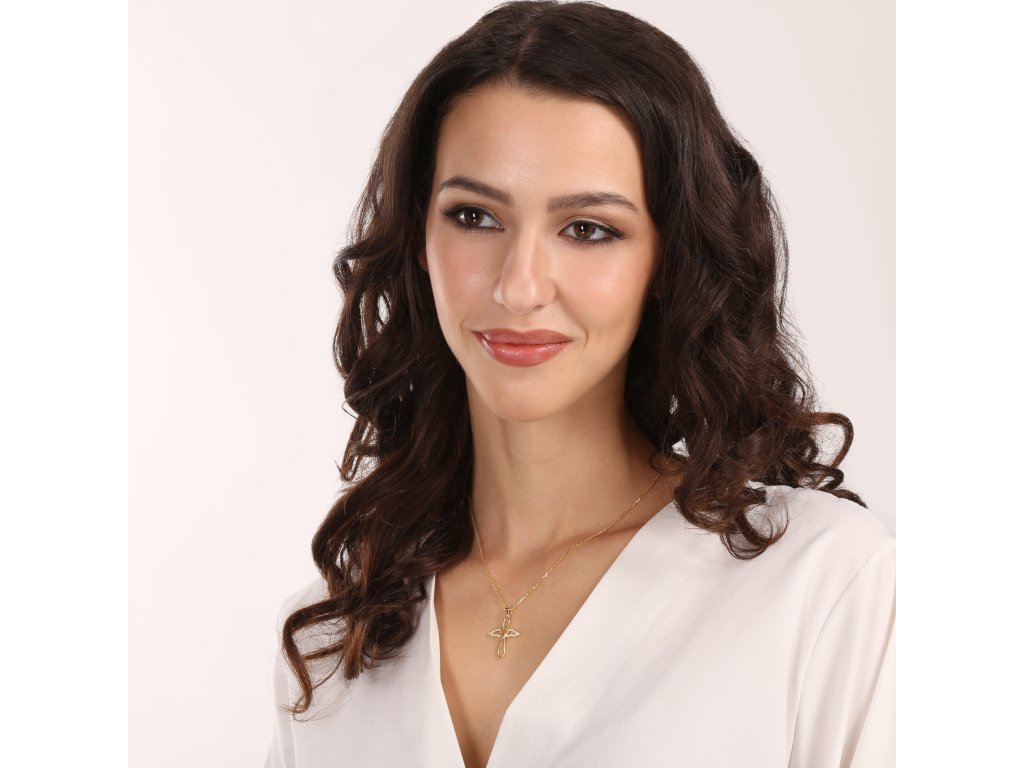 Pozlátený náhrdelník s príveskom anjela je nádherným symbolom ochrany, lásky a duchovnej sily. Prívesok má jemne prepracovanú siluetu anjela s elegantnými krídlami zdobenými trblietavými zirkónmi, ktoré dodávajú šperku jemný a žiarivý lesk. V centre anjelskej postavy sa nachádza srdce - silný symbol lásky a starostlivosti.