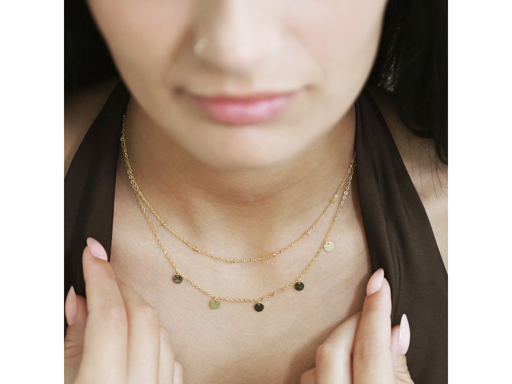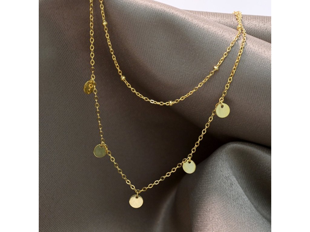 Pozlátený náhrdelník dvojradový malé placky a guličky 62007 Au plating