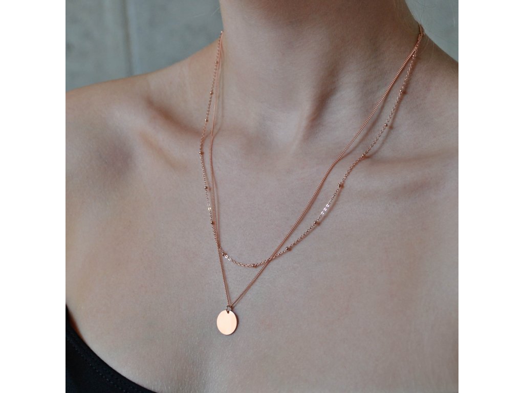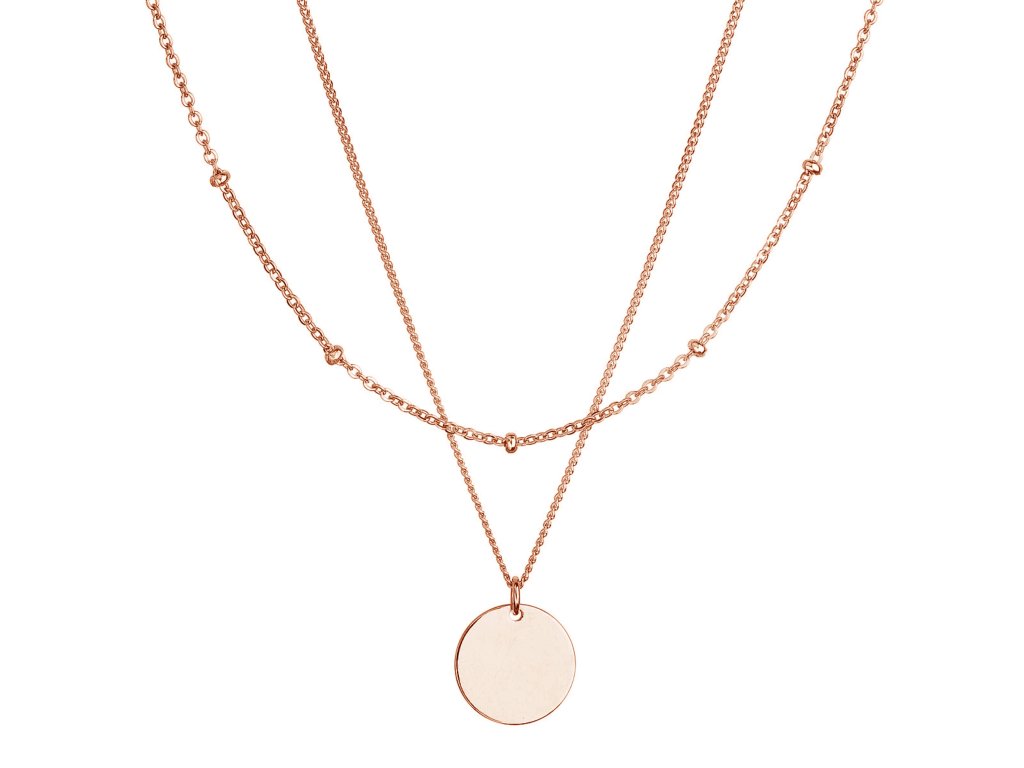 Nový moderný a elegantný štýl sú dvojité náhrdelníky a náramky. Choďte s módou s novým Rose Gold náhrdelníkom 62002, ktorý tvorí dve retiazky , jeden s jemnými guličkami po obvode a druhý s modernou leštenou striebornou placičkou.