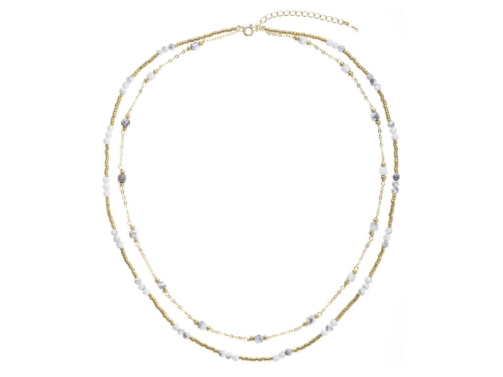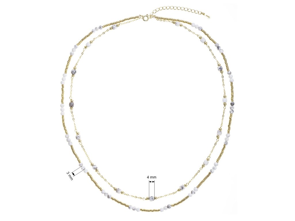 Očarujúce jemný dvojradový náhrdelník s drobnými prírodnými kamienkami howlity pôsobí ľahko a elegantne.