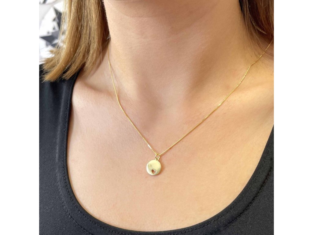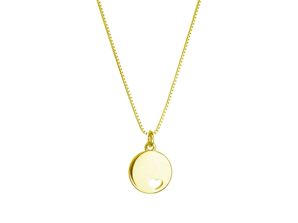 Elegantný pozlátený strieborný náhrdelník s moderným príveskom v tvare lesklej placky navyše s malým srdiečkom vo vnútri. Jednoduchý a nápaditý design. Choďte s módou!