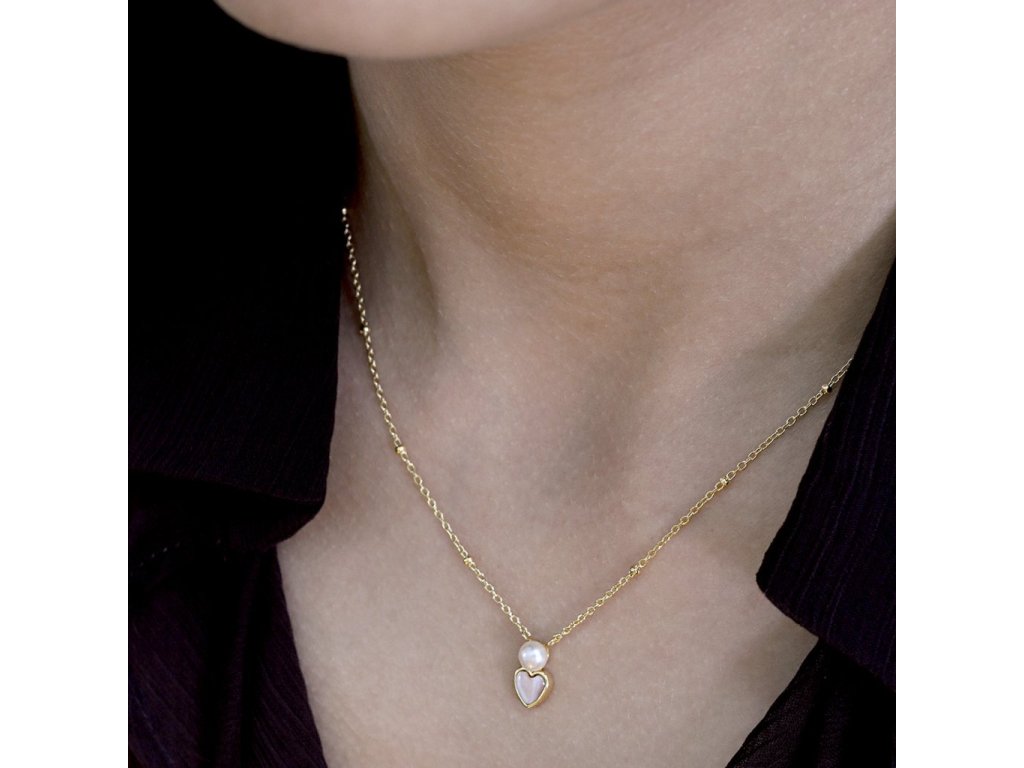 Pozlátený náhrdelník s riečnou perlou srdiečko 22055.1