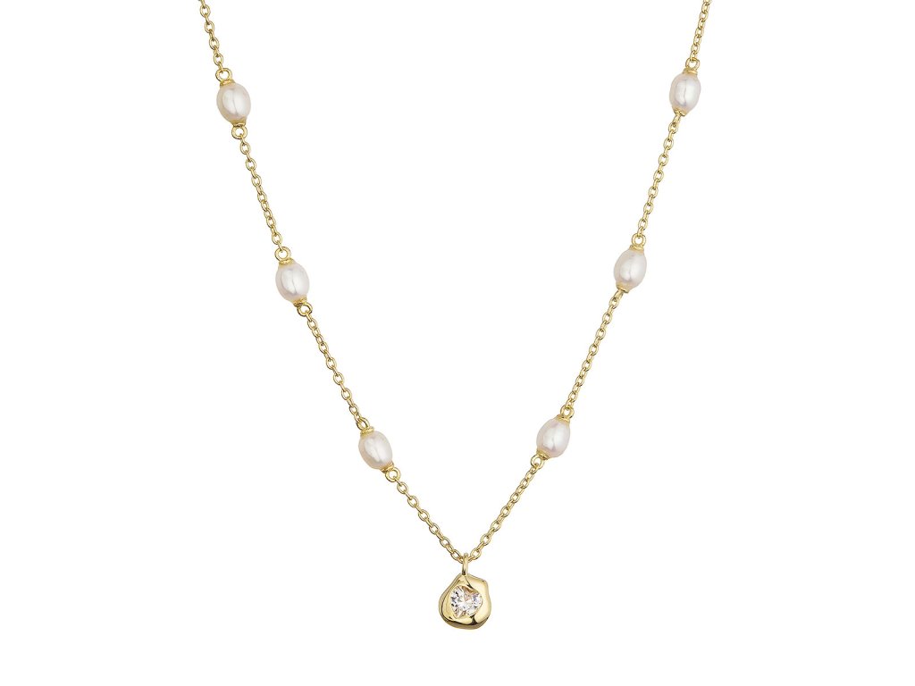 Pozlátený náhrdelník s riečnymi perlami a srdiečkom 22058.1