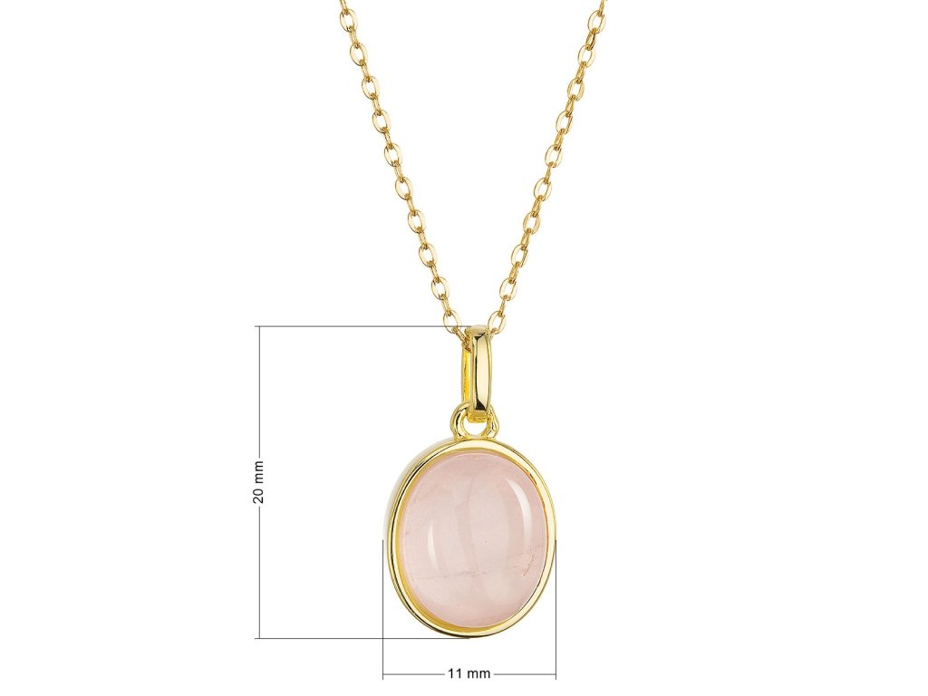 Náhrdelník s príveskom je vytvorený zo striebra rýdzosti 925/1000 s pozlátenou úpravou, ktorá dodáva šperku teplý a luxusný nádych. Precízne zasadený prírodný ruženín v nežne ružovej farbe zapĺňa oválny prívesok a pripomína jemnosť a krehkosť ľudského srdca. Pozlátený povrch nežne obklopuje kameň a vytvára harmonický celok, ktorý priťahuje pohľady svojou jemnosťou a eleganciou.