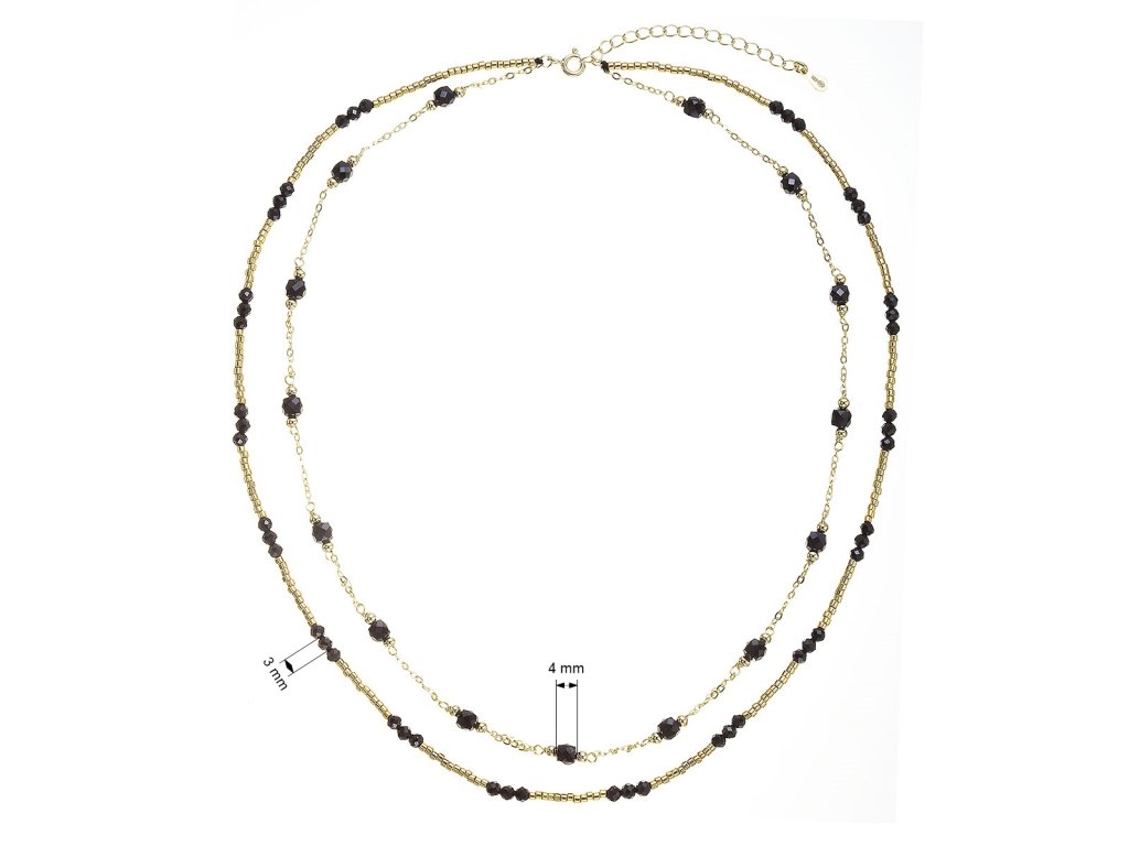 Očarujúce jemný dvojradový náhrdelník s drobnými prírodnými kamienkami, čiernymi spinelmi pôsobia veľmi elegantne.
