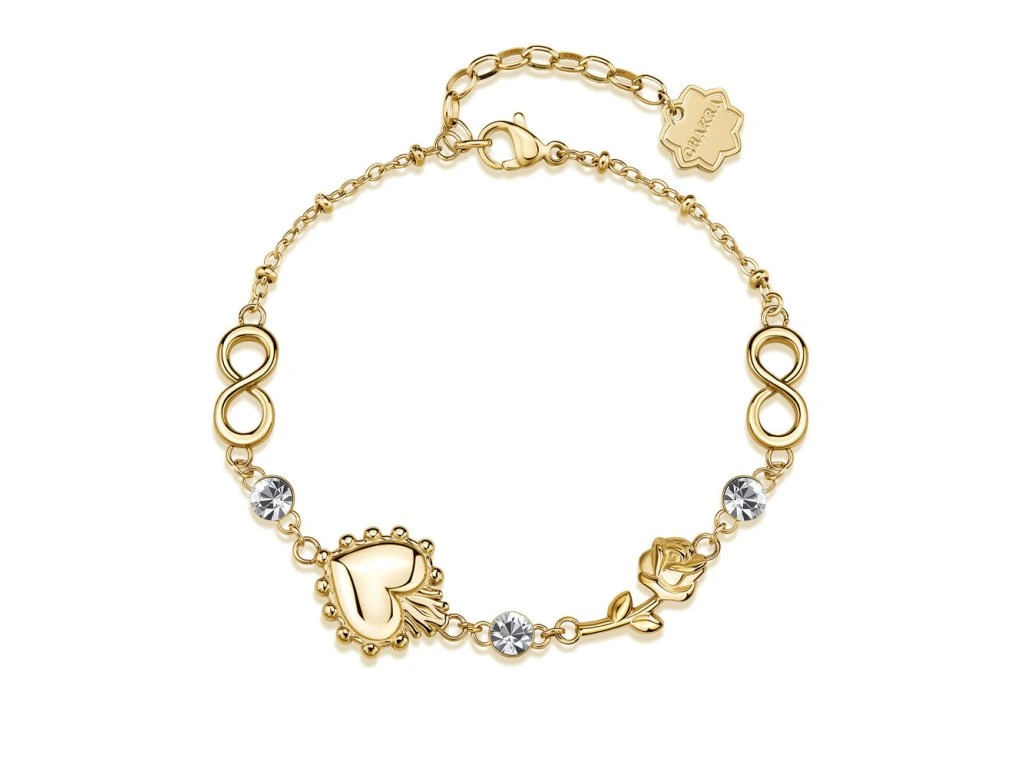Pozlátený náramok srdce, nekonečno, ruža Brosway Chakra BHKB282