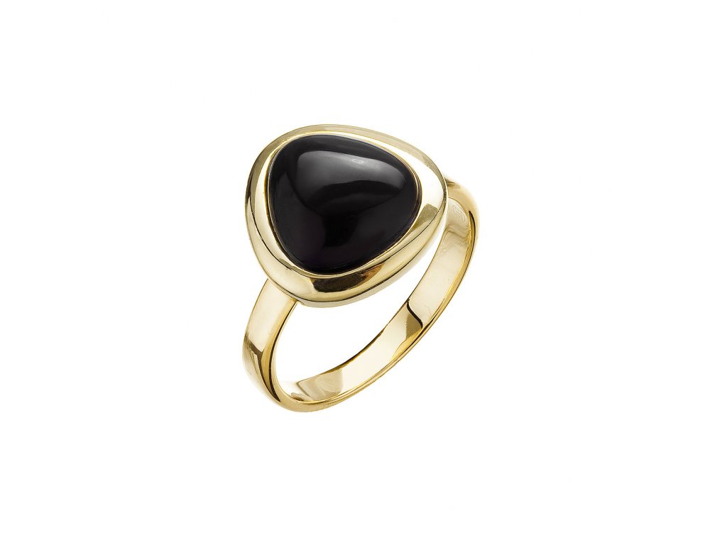 Pozlátený prsteň trojuholník s onyxom 15027.3