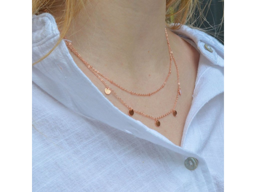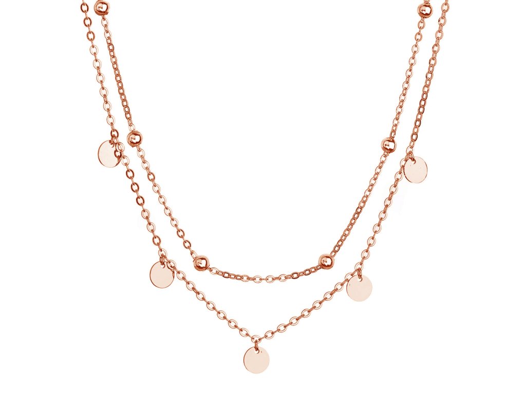 Pozlátený ROSE náhrdelník dvojradový malé placky a guličky 62007