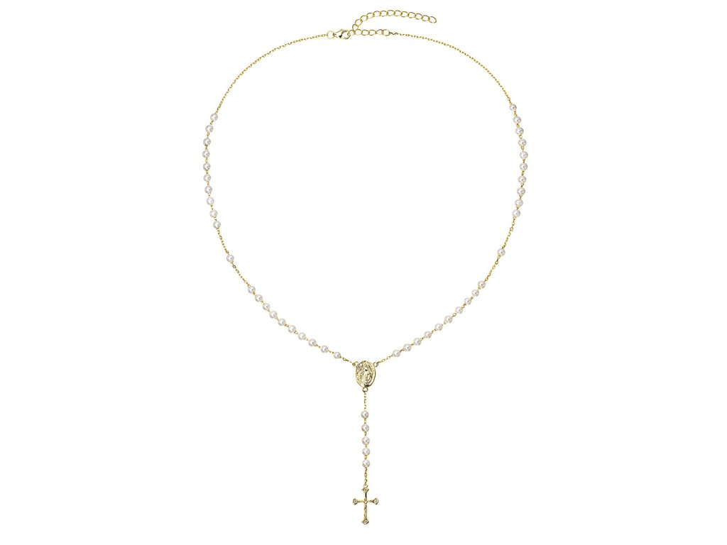 Pozlátený ruženec s bielymi riečnymi perlami 22062.1