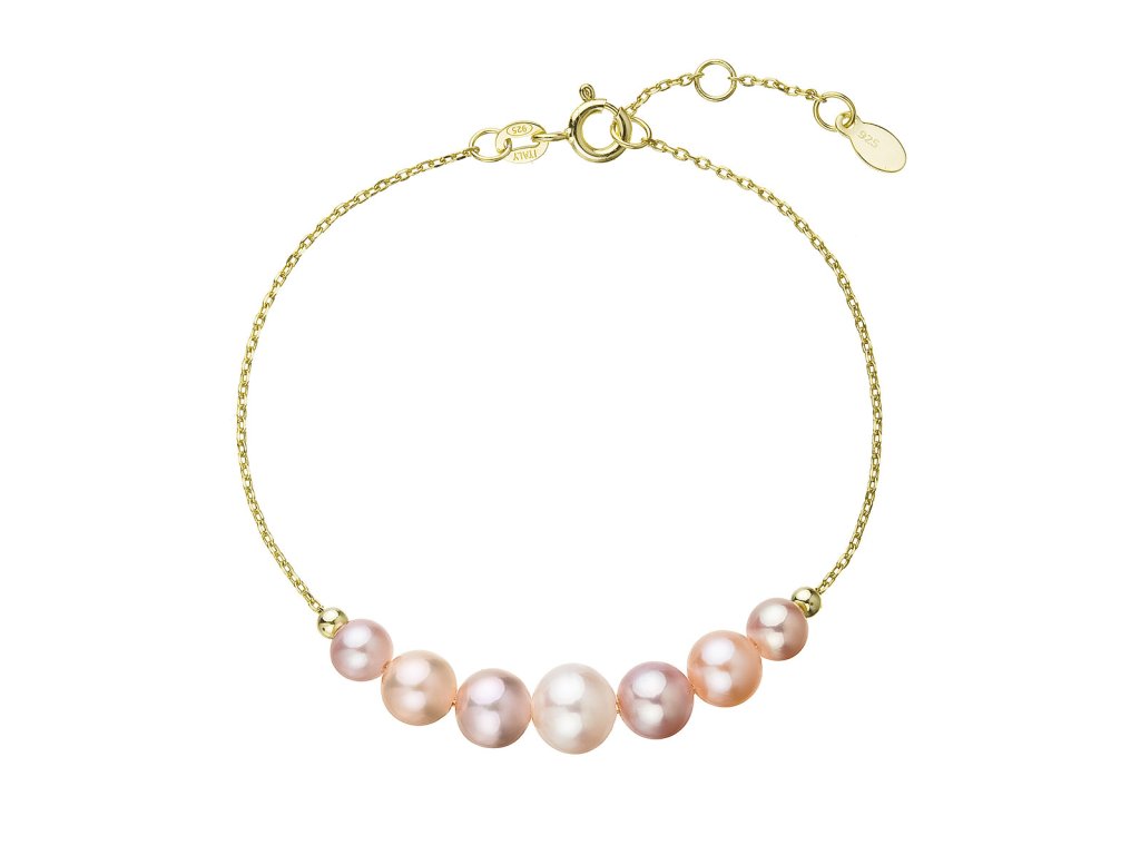 Pozlátený strieborný náramok 7 riečnych periel na retiazke 23024.3 multi Au plating