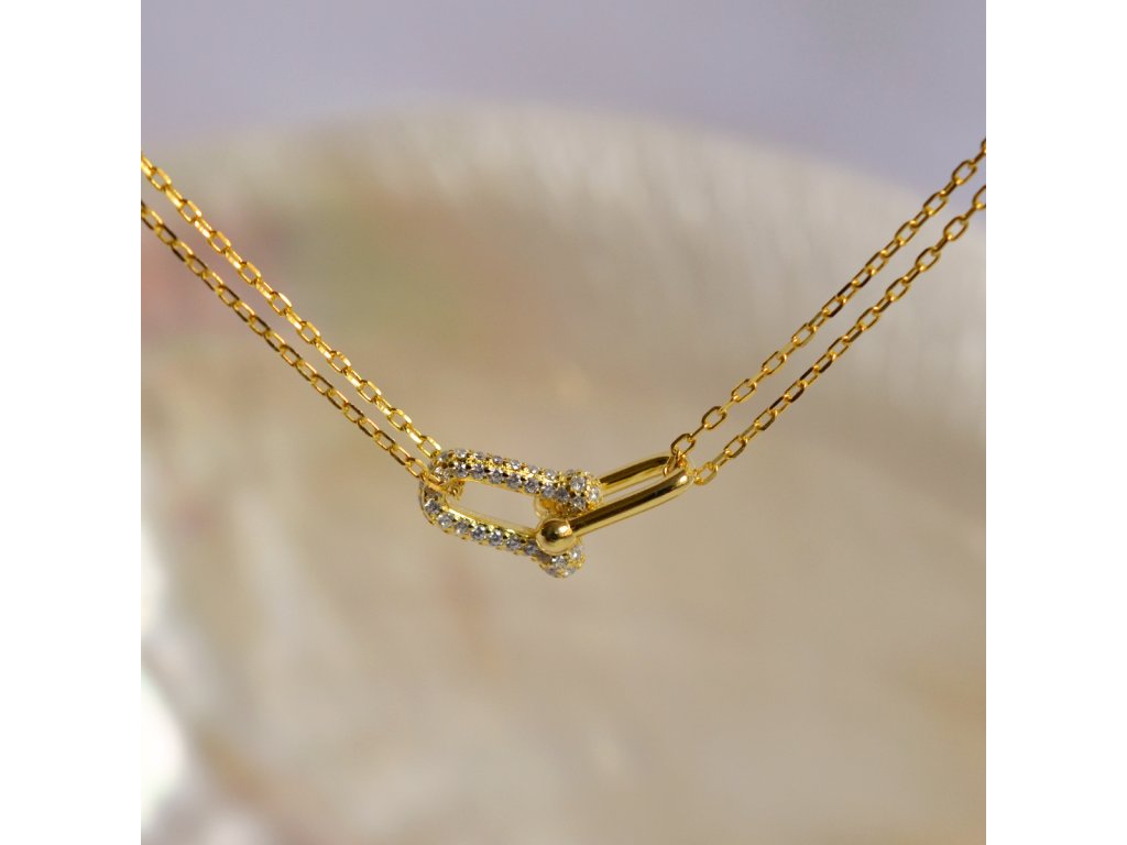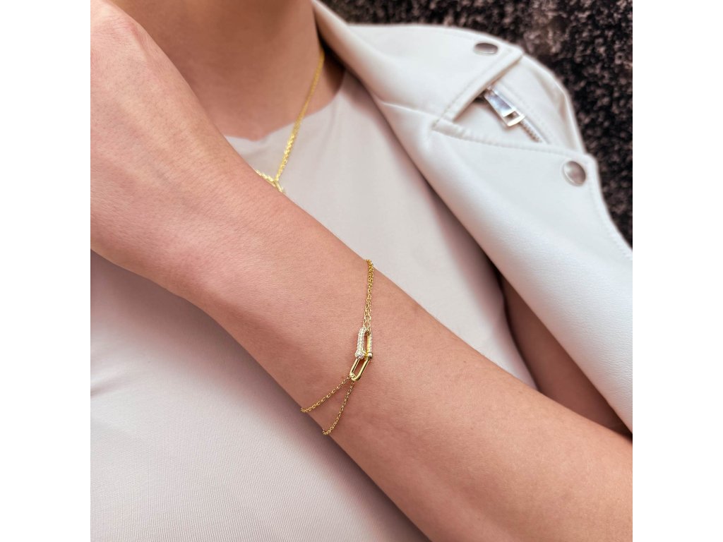 Pozlátený strieborný náramok s elegantným uzlom a zirkónmi 13085.1