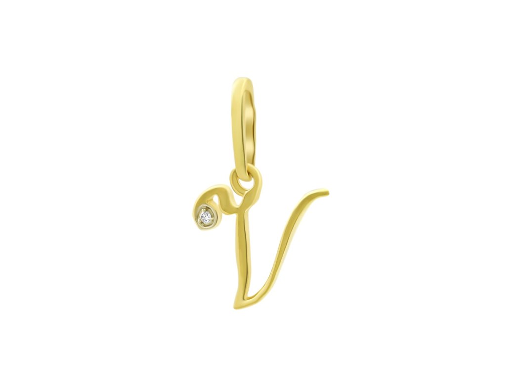 Jemný a osobitý prívesok v tvare písmena V zo žltého zlata je ozdobený jedným drobným briliantom, ktorý mu dodáva elegantný lesk. Vďaka minimalistickému dizajnu je ideálny na každodenné nosenie a skvele sa hodí aj ako darček s osobným významom.