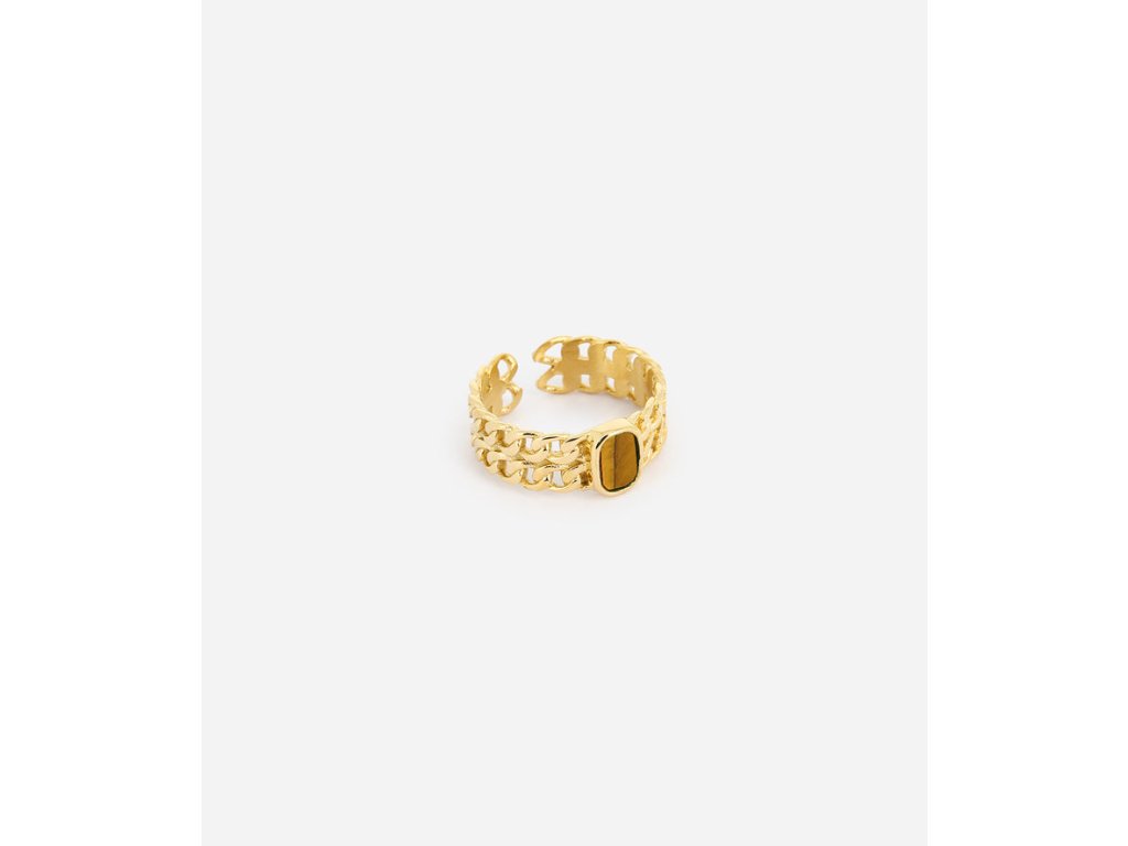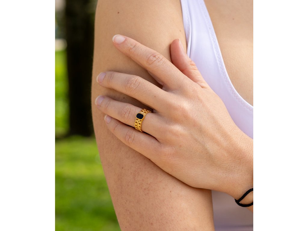 Oceľový prsteň pozlátený jemným zlatom s prírodným kameňom v strede.