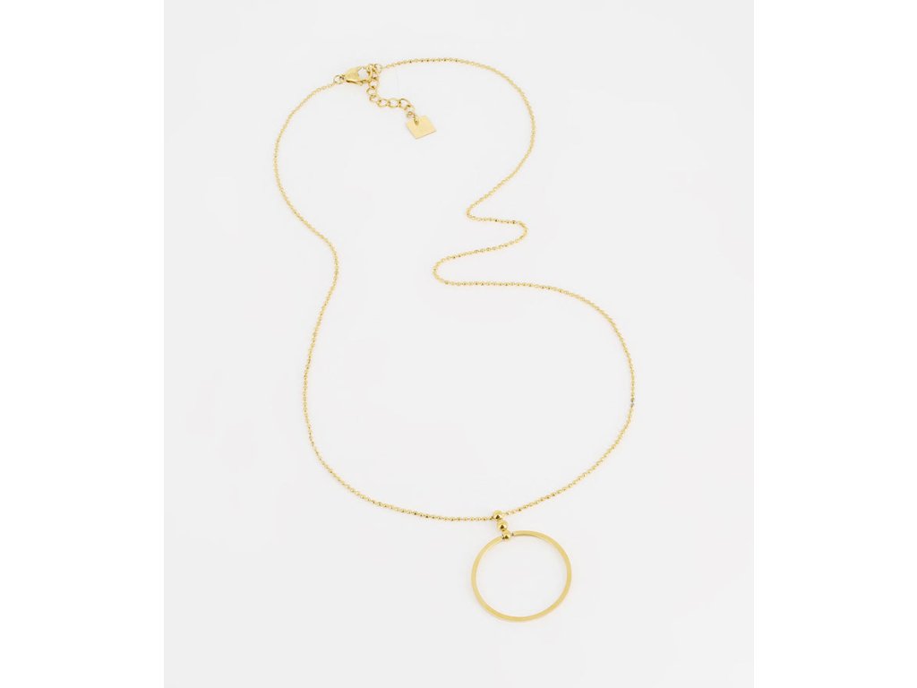 Retiazkový náhrdelník z ocele pozlátený jemným zlatom s príveskom v tvare kruhu.