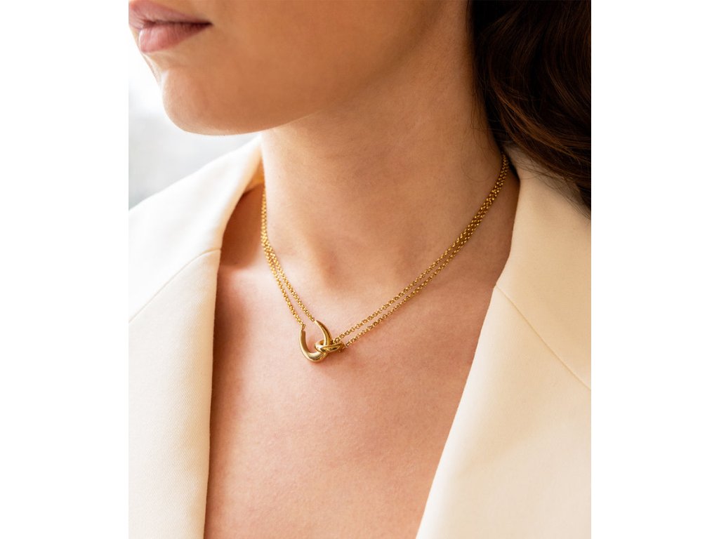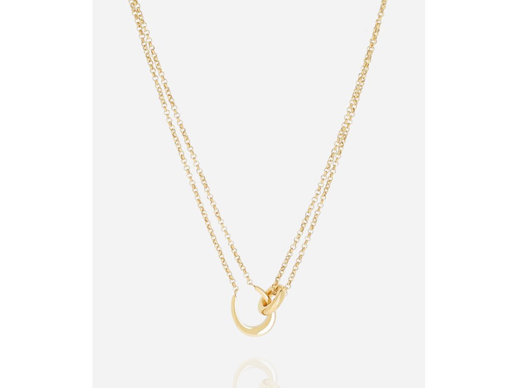 Náhrdelník z ocele pozlátený jemným zlatom osadený dvoma prepojenými oceľovými kúskami.