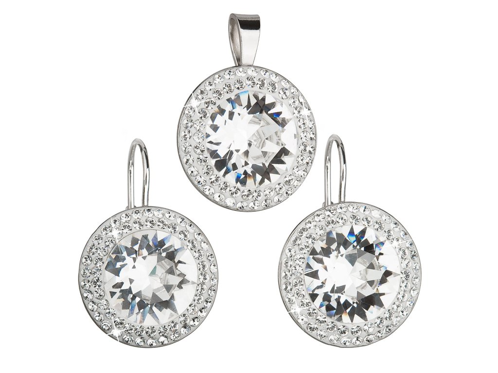 Sada šperkov s krištáľmi Swarovski náušnice a prívesok biele okrúhle 39108.1