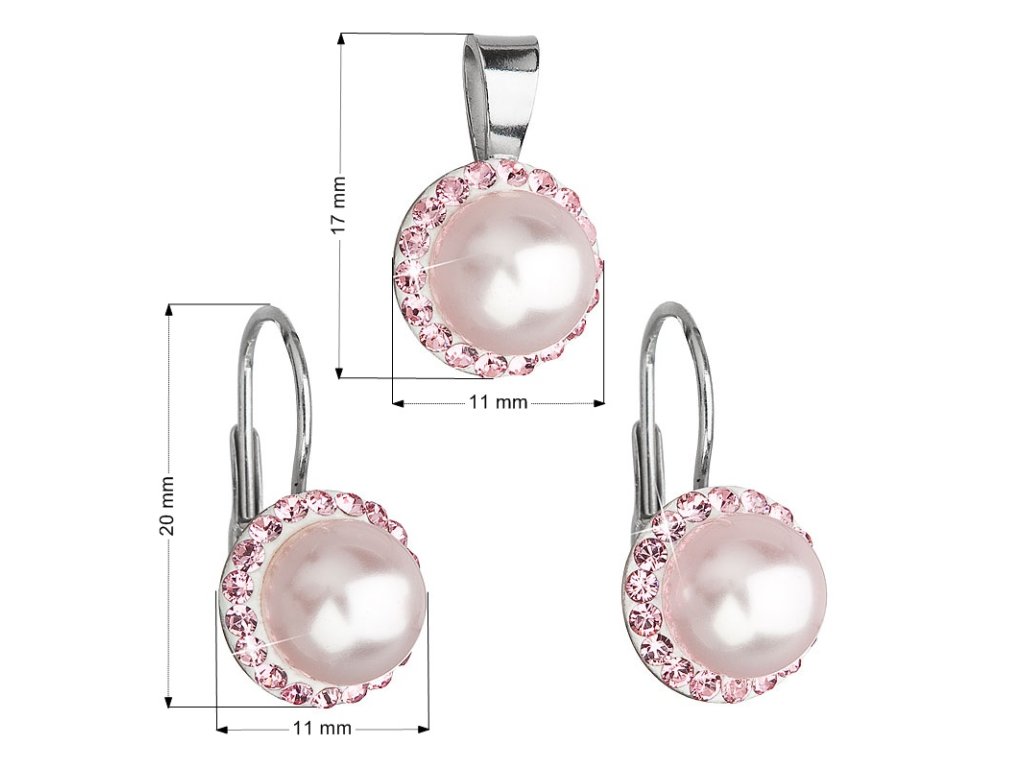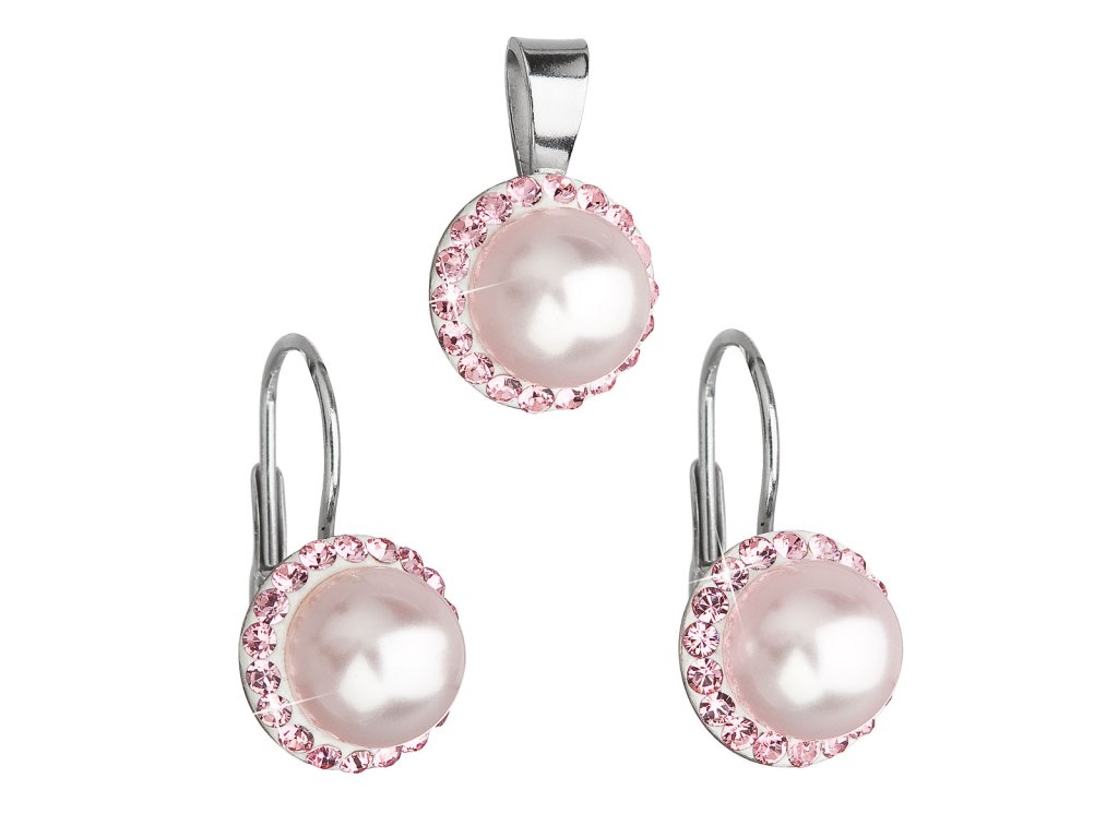 Sada šperkov s krištáľmi Swarovski náušnice a prívesok ružová perla okrúhle 39091.3