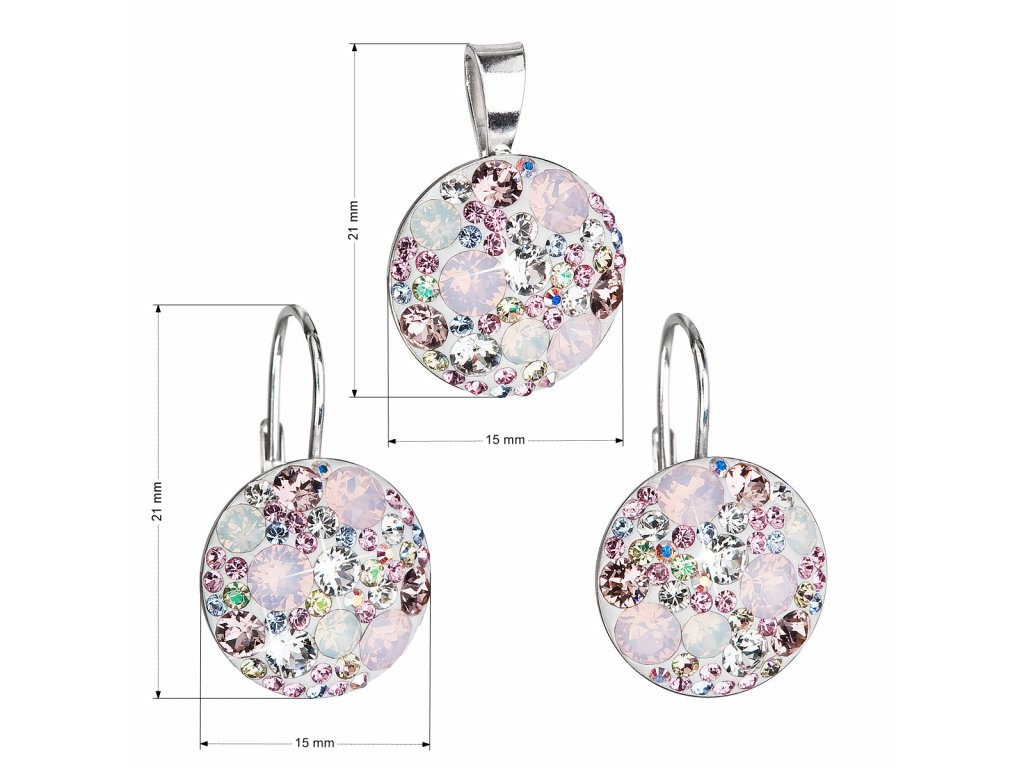 Parametre súpravy šperkov s krištáľmi Swarovski náušnice a prívesok ružové okrúhle 39117.3
