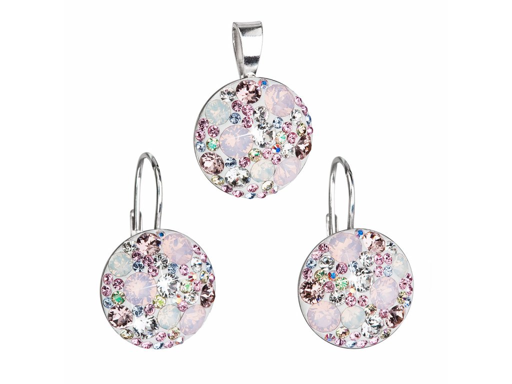 Sada šperkov s krištáľmi Swarovski náušnice a prívesok ružové okrúhle 39117.3