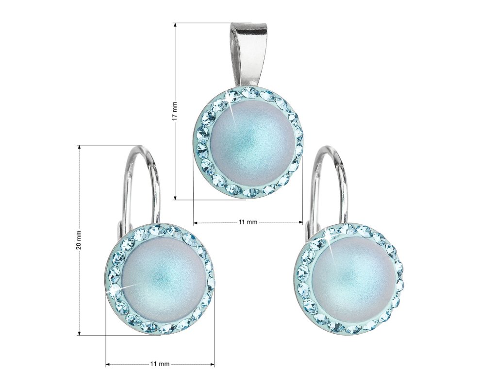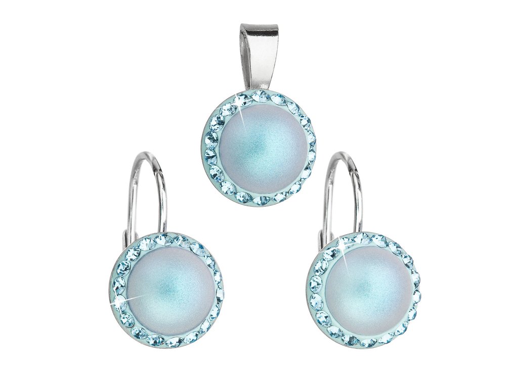 Sada šperkov s krištálmi Swarovski náušnice a prívesok so svetlomodrou matnou perlou okrúhle 39091.3