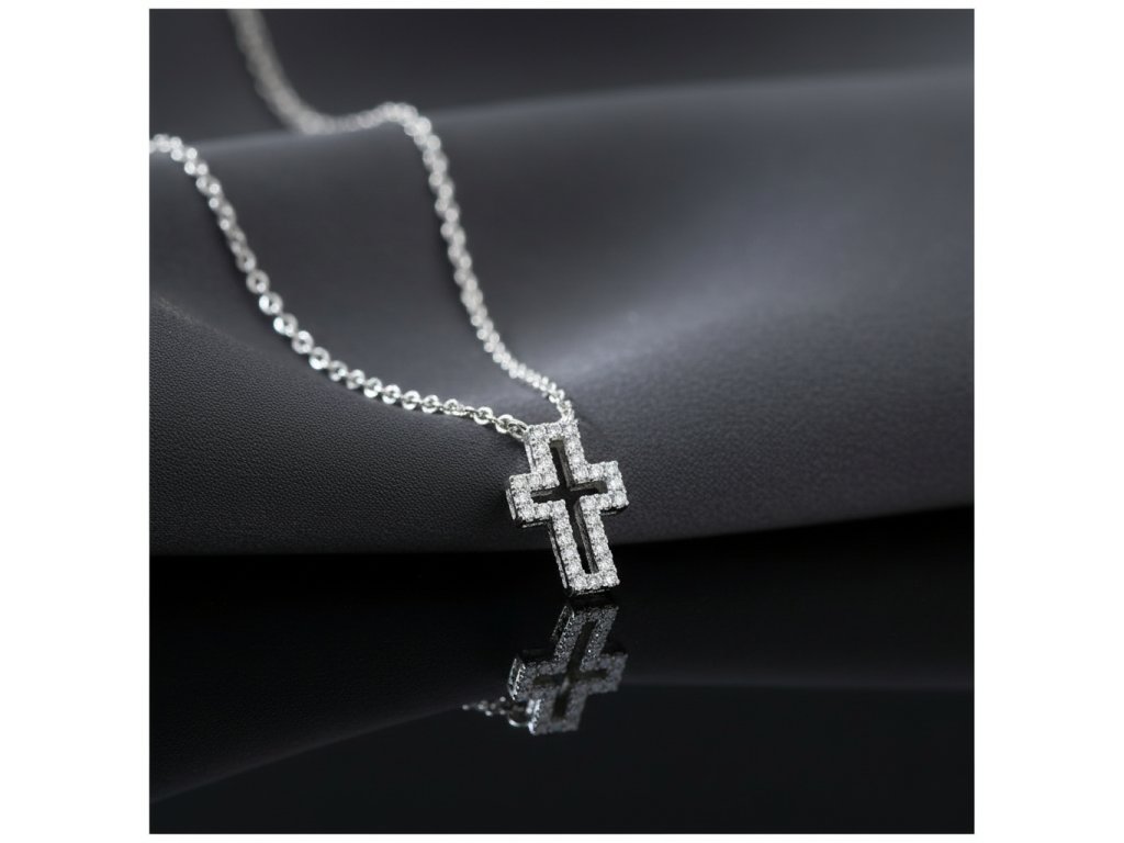 Strieborná jemná retiazka krížik zdobený zirkónmi NZB77439