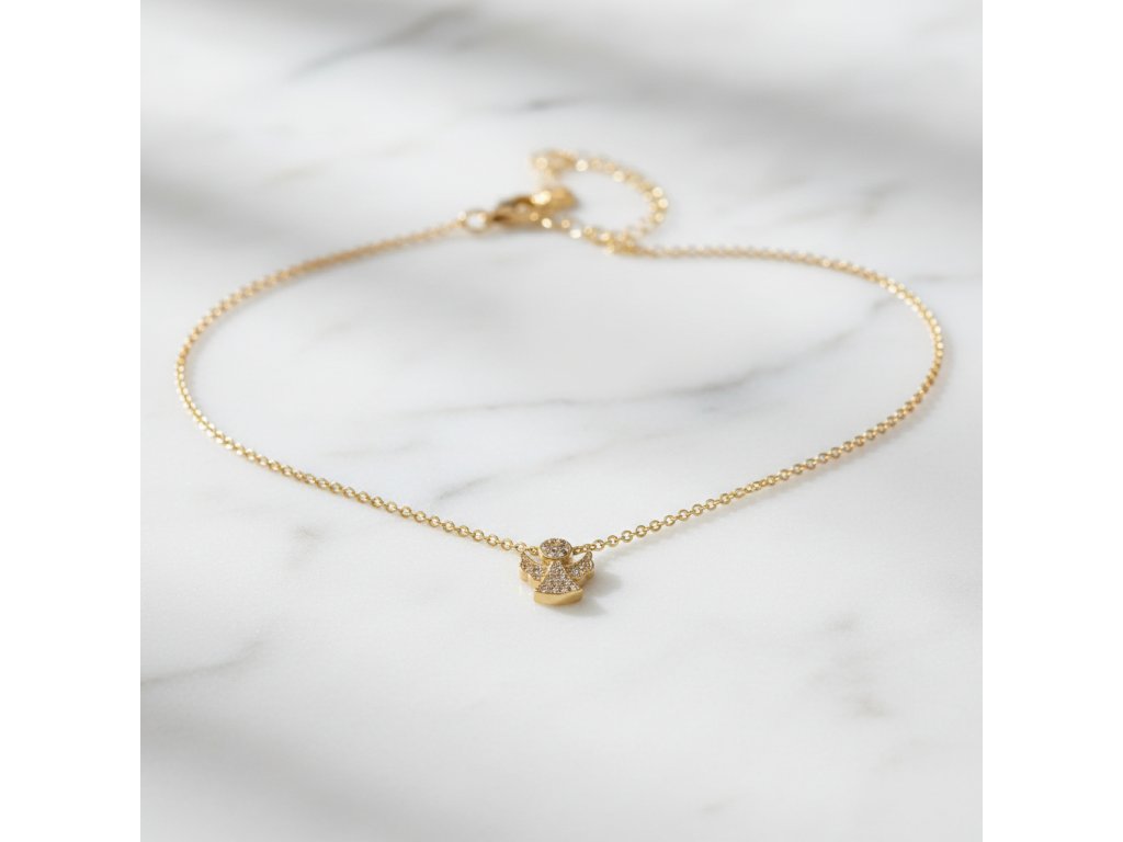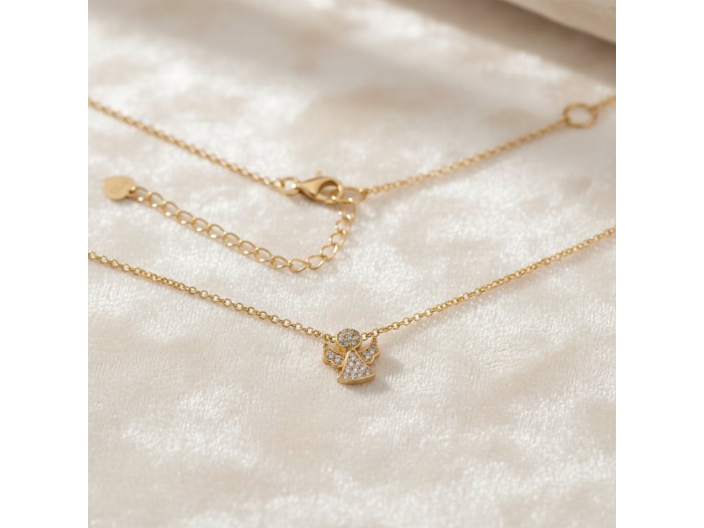 Strieborná pozlátená retiazka s príveskom anjel zo zirkónmi NZB90345