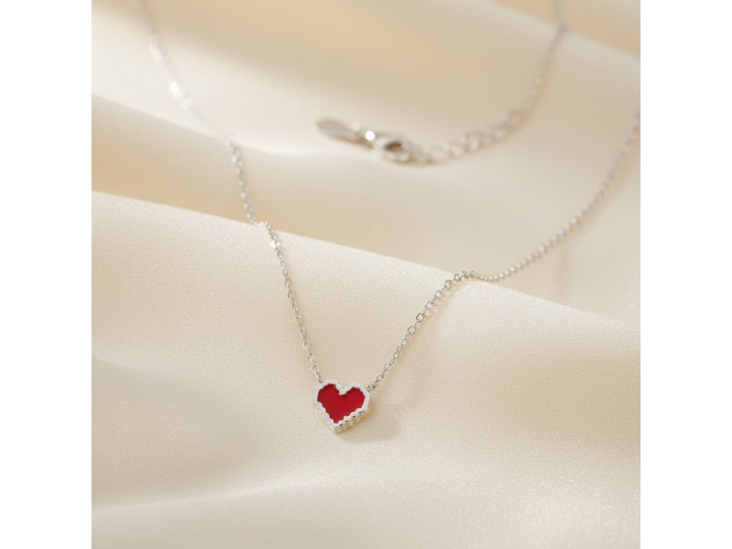 Strieborná retiazka prívesok červené srdce NOA109132