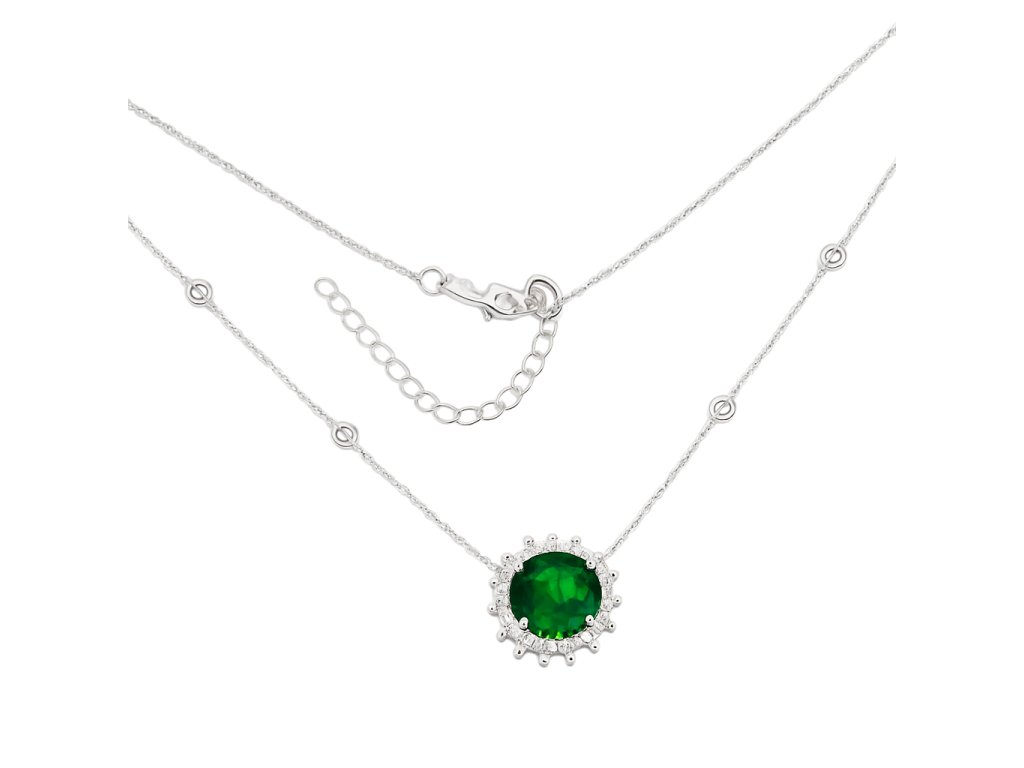 Elegantný strieborný náhrdelník s rhódiovanou povrchovou úpravou vyniká jemným dizajnom a žiarivým zeleným zirkónom v strede. Ozdobený je drobnými detailmi na retiazke a jeho nadčasový vzhľad sa hodí na bežné nosenie aj výnimočné príležitosti. Náhrdelník je dodávaný v darčekovej krabičke, čo z neho robí ideálny darček.