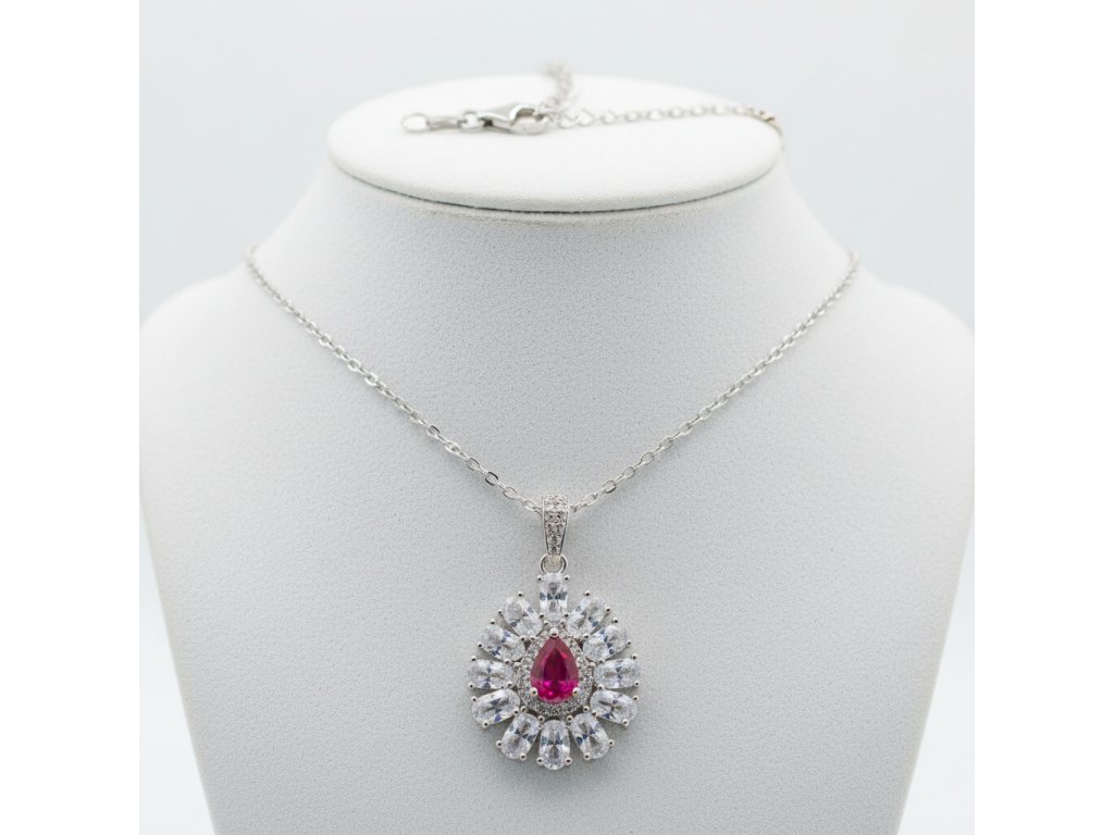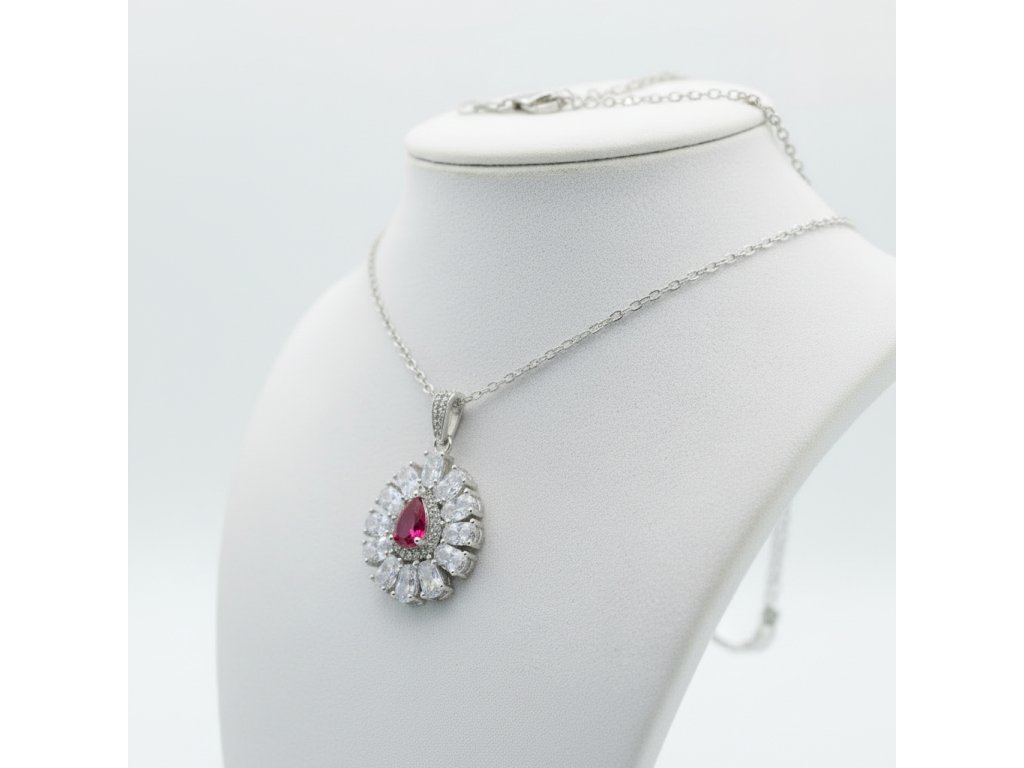Strieborná retiazka s príveskom v tvare kvapky s červeným zirkónom NZB92309