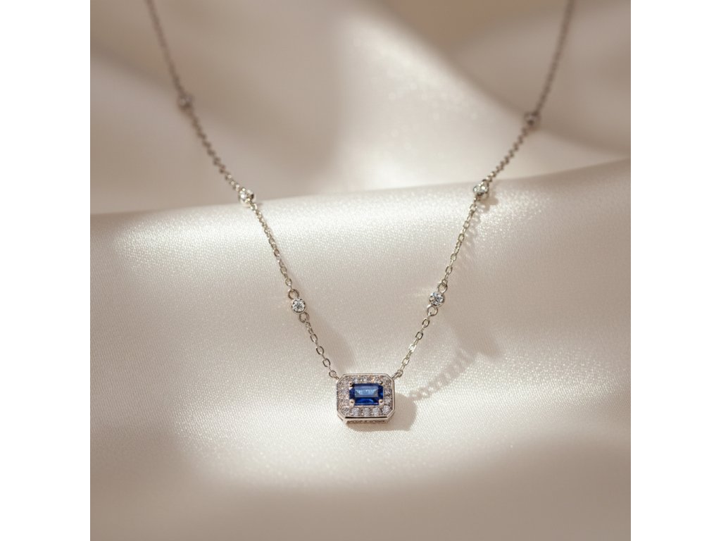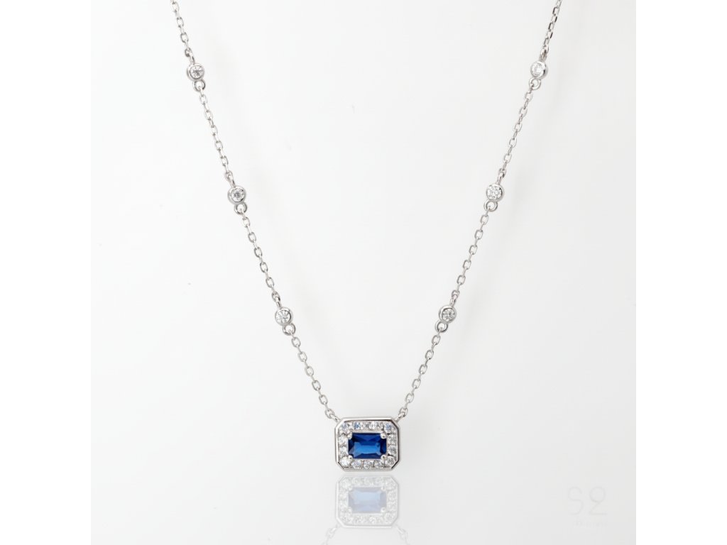 Strieborná retiazka s prívesok - modrý obdĺžnikový zirkón NZB116327