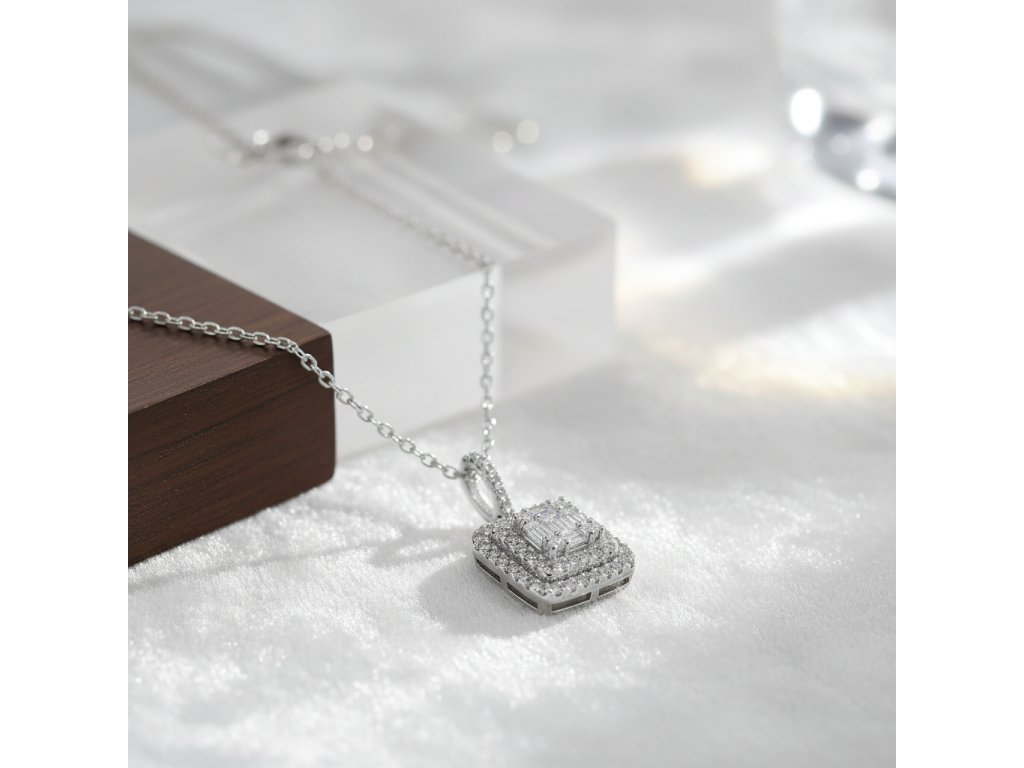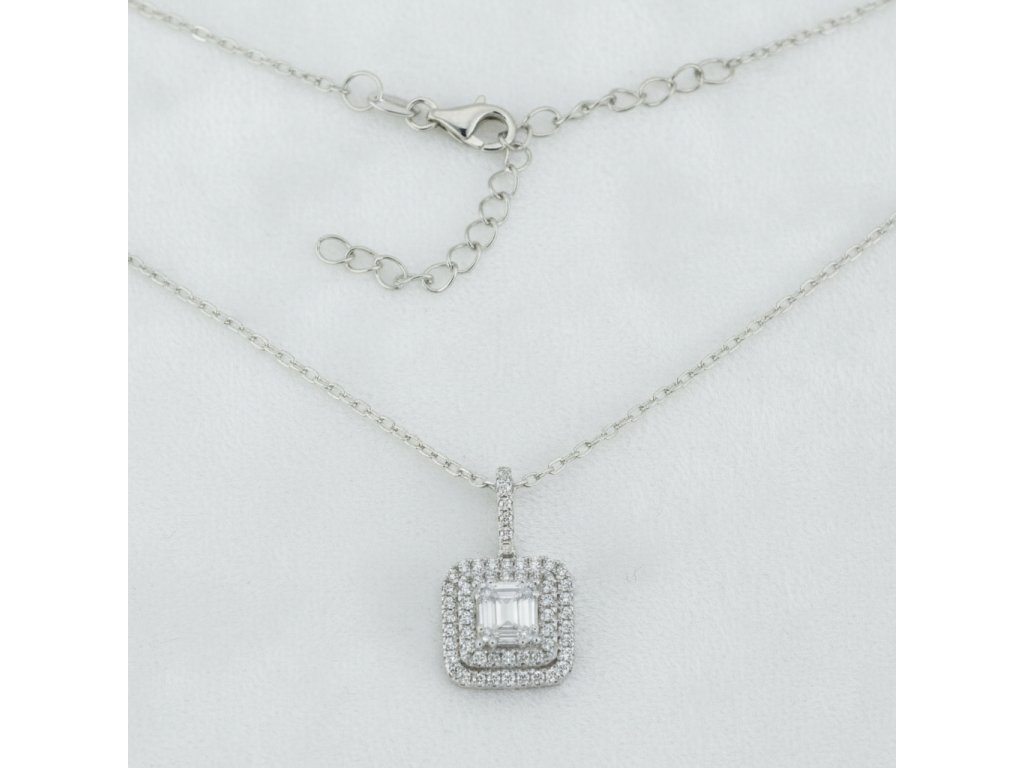Strieborná retiazka so žiarivým štvorcovým príveskom so zirkónmi NZB92304