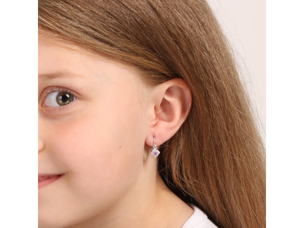 Strieborné detské náušnice visiace so zirkónom ružová kvetinka 11175.3