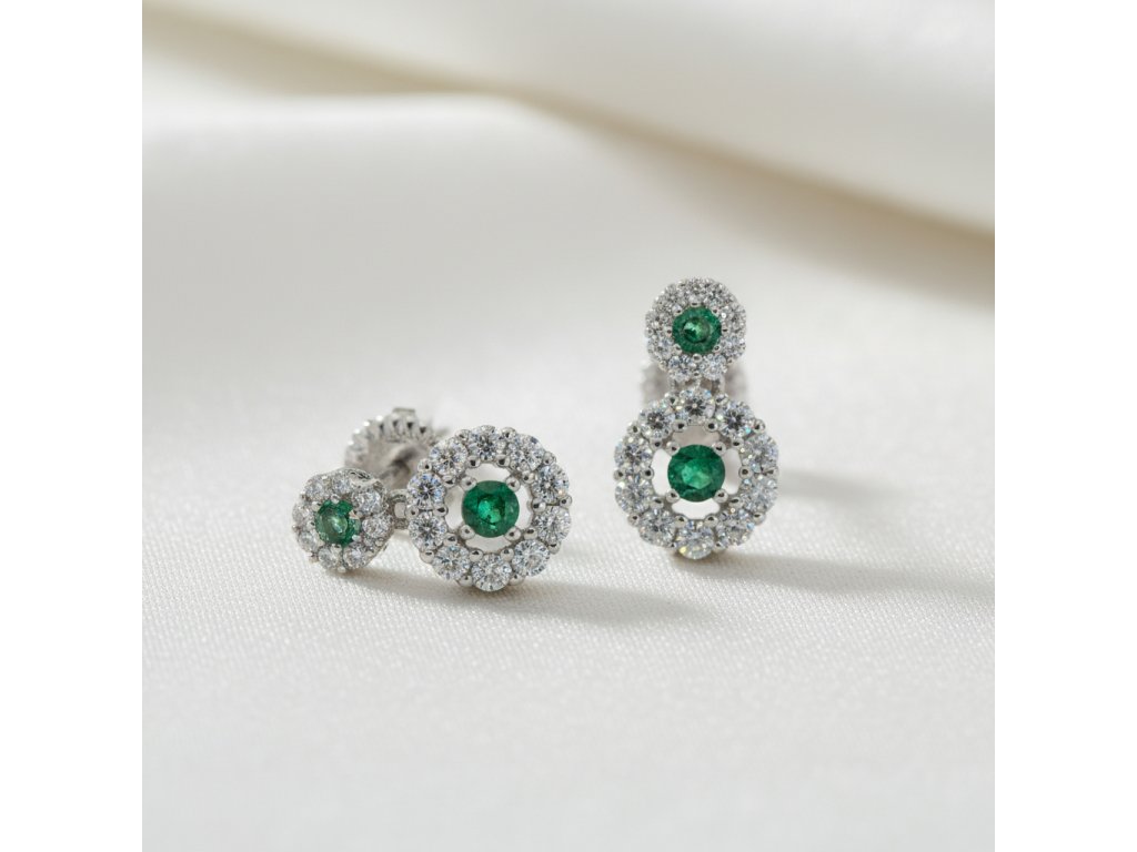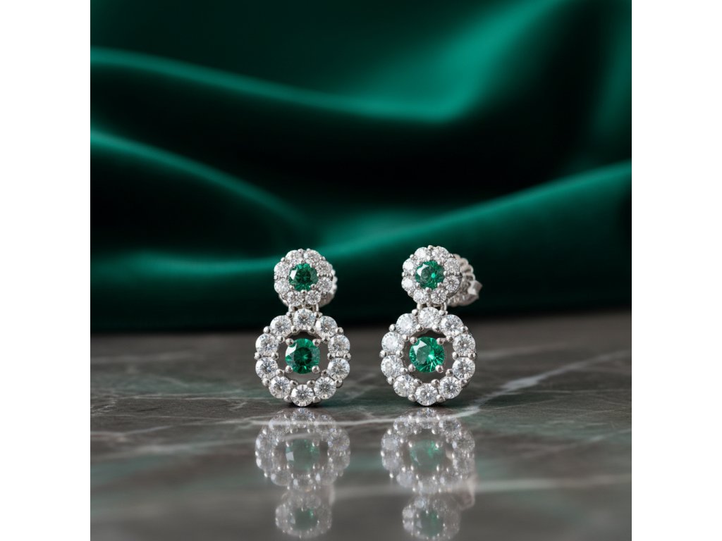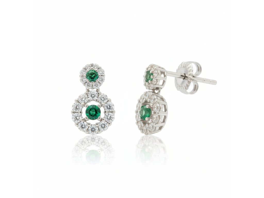 Strieborné dvojité náušnice so zeleným zirkónom v strede EZB109798
