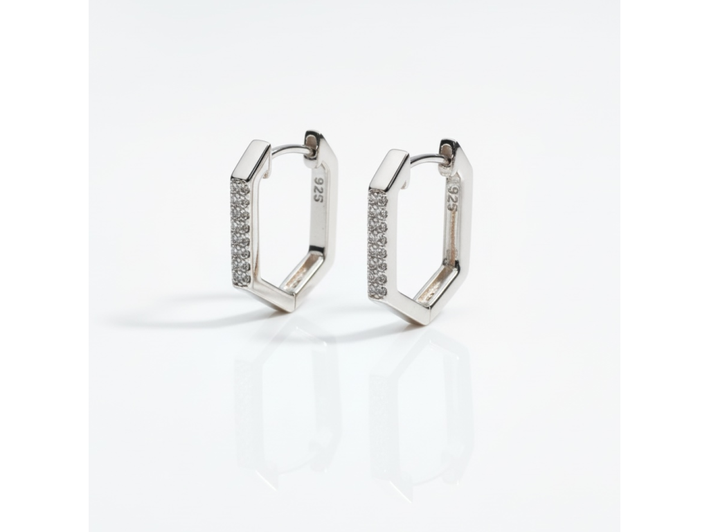 Strieborné hranaté náušnice so zirkónmi EZB121127
