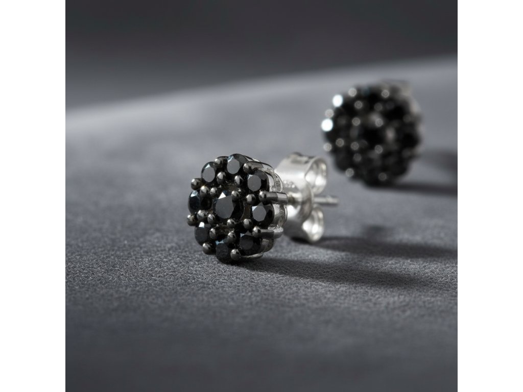Strieborné napichovacie náušnice čierny kvietok EZB051848