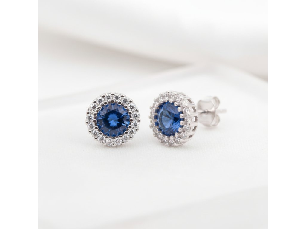 Strieborné napichovacie okrúhle náušnice s modrým zirkónom EZB124106