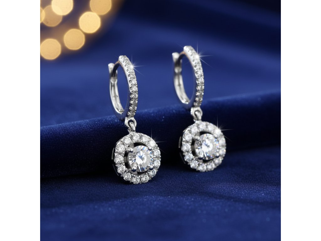 Strieborné napichovacie visiace náušnice so zirkónmi EZB047903