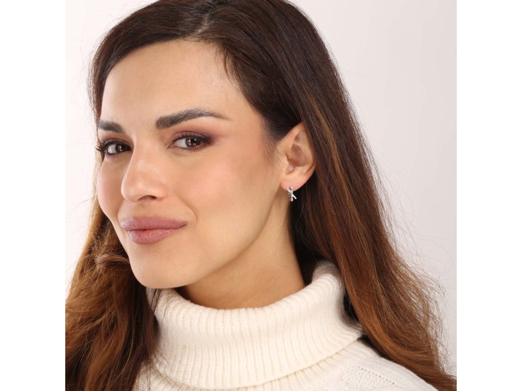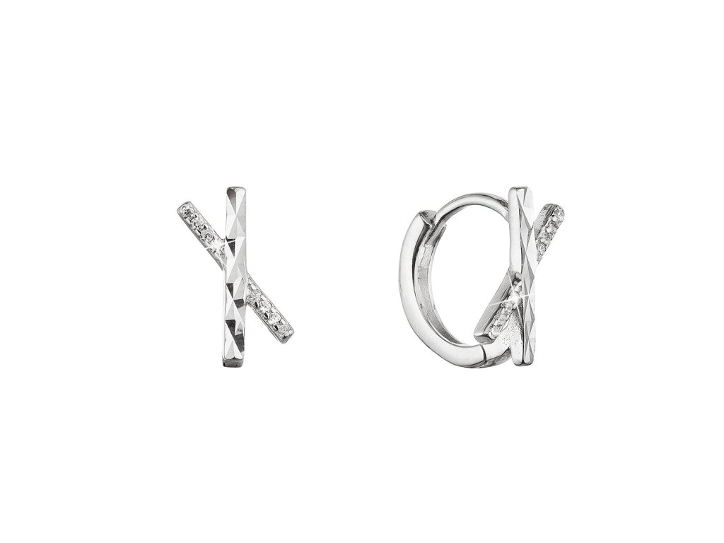 Strieborné náušnice "X" so zirkónmi v bielej farbe 11447.1
