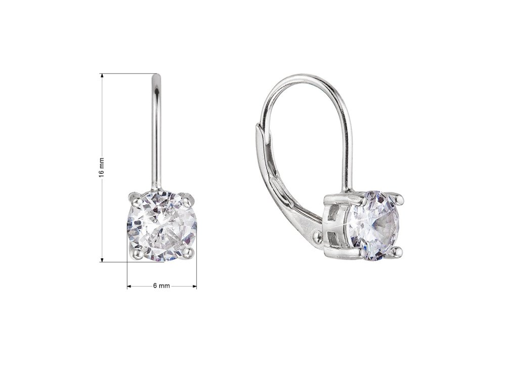 Visiace náušnice 11477.1 sú vyrobené zo striebra rýdzosti 925/1000 , ktorého povrch je upravený ródiom. Rhodium šperk ochráni proti sčernaniu, zožltnutiu alebo poškriabaniu. Náušnice tvoria len jeden biely okrúhly zirkón s priemerom 6 mm. Zapínanie je na klapku. Šperk neobsahuje nikel , a tak sa nemusíte obávať žiadne alergické reakcie.