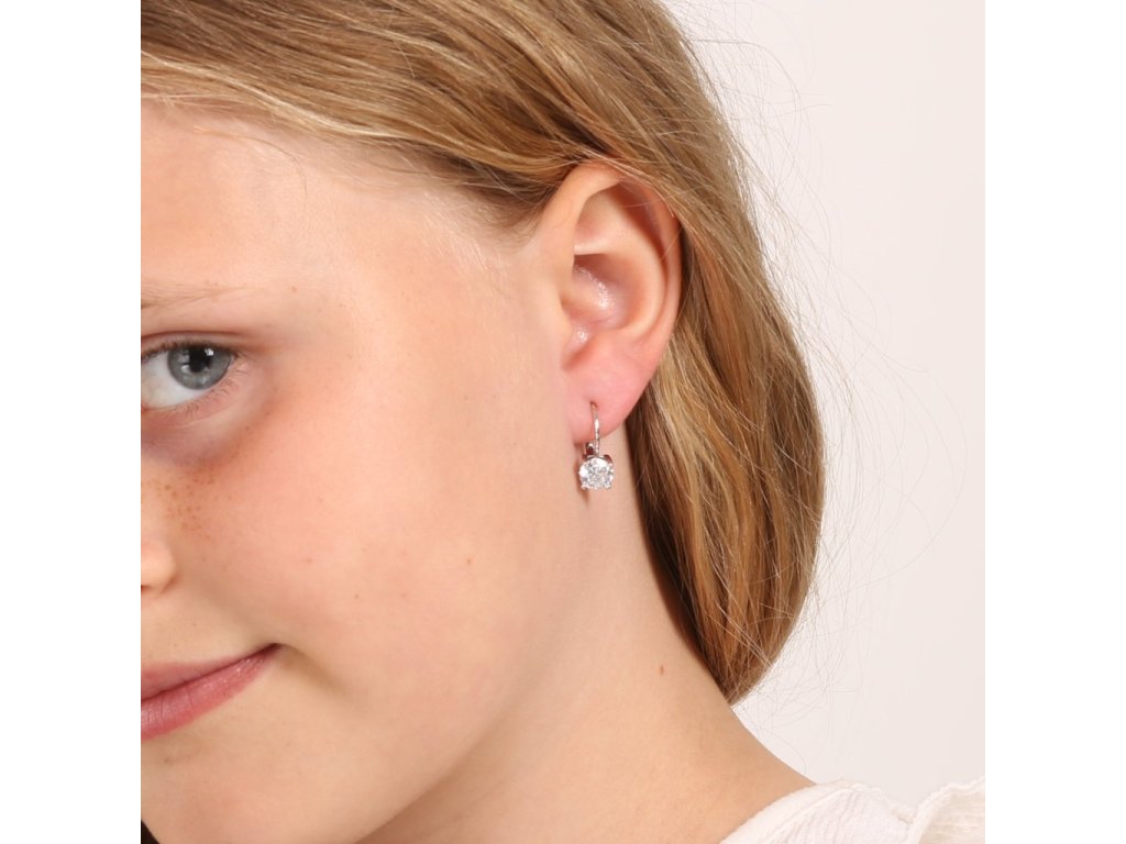 Zháňate jednoduché náušničky pre svoje malé dievčatko? Čo napríklad okrúhle visiace náušnice s trblietavým zirkónom.