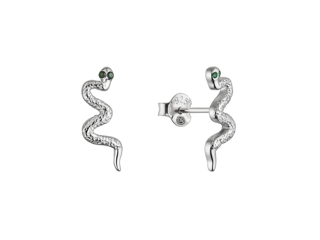 Objavte jedinečný šperk, ktorý zaujme na prvý pohľad – strieborné náušnice v tvare hada. Sú vyrobené zo striebra o rýdzosti 925/1000 s ródiovou úpravou a ich precízne spracovanie zvýrazňuje elegantné krivky hadej siluety . Dominantným prvkom sú dva zelené zirkóny zasadené v miestach očí, ktoré dodávajú náušniciam výrazný a tajomný pohľad.