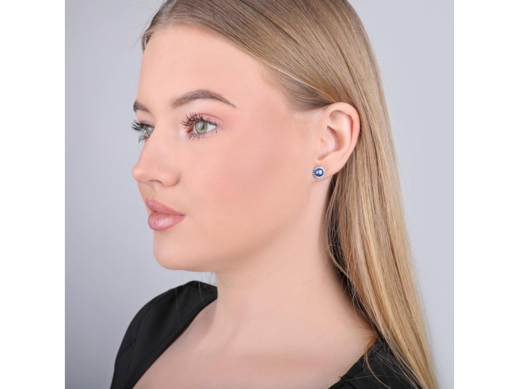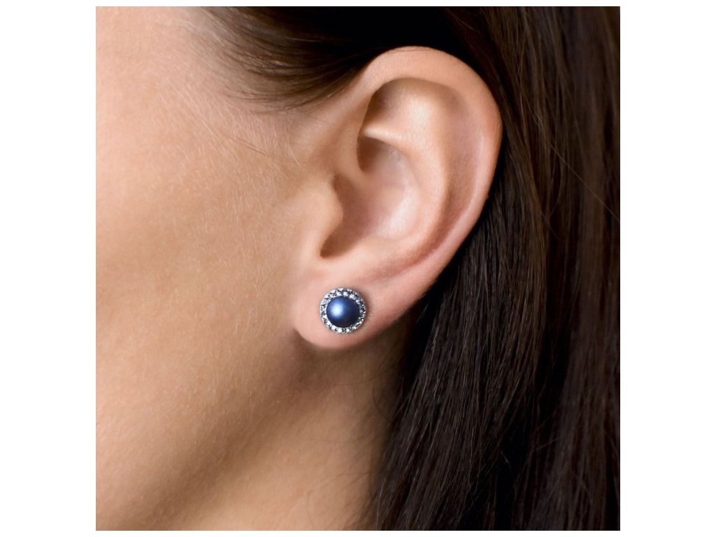 Perlové náušnice typu kôstky 31214.3 sú vyrobené zo striebra o rýdzosti 925/1000 s povrchovou úpravou ródiom a sú zdobené veľkou okrúhlou matnou Swarovského perlou v tmavomodrej farbe. Po celom obvode sú náušnice osadené modrými Swarovského krištáľmi, ktoré im dodávajú lesk a punc luxusu. Náušnice zapnete na puzetu, ktorá ich spoľahlivo ochráni proti nechcenej strate. Do náušníc nie je pridaný nikel, a tak ich môžu bez obáv nosiť aj alergici.