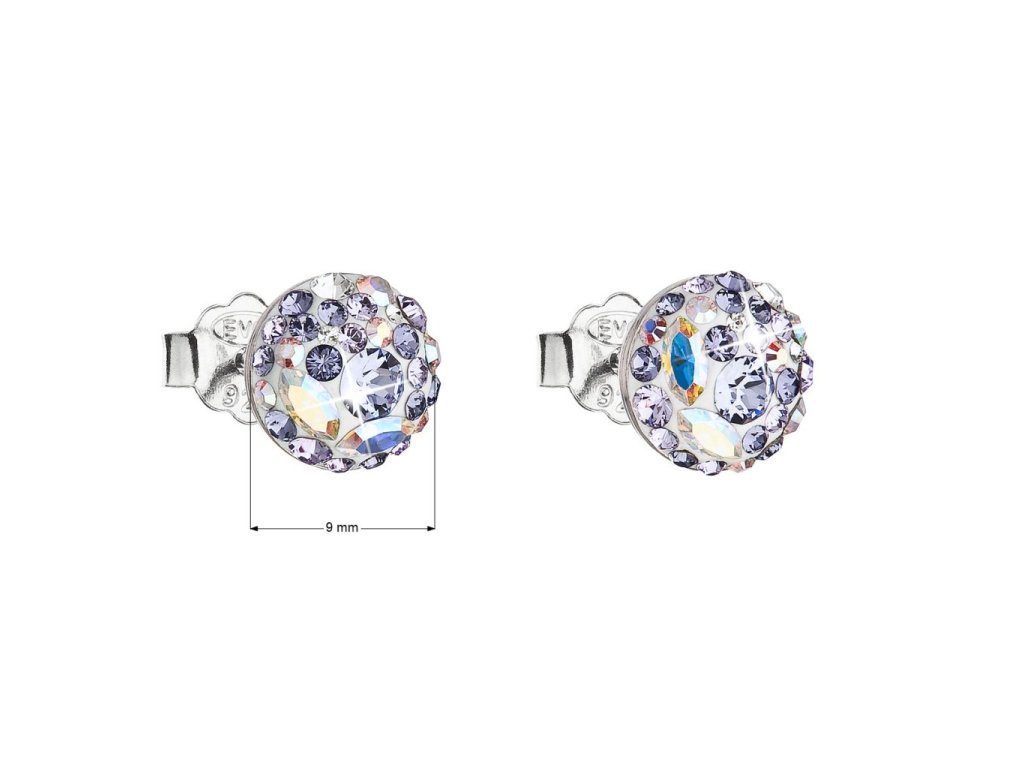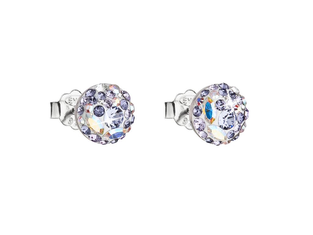 Strieborné náušnice kôstka s krištáľmi Swarovski fialové okrúhle 31136.3