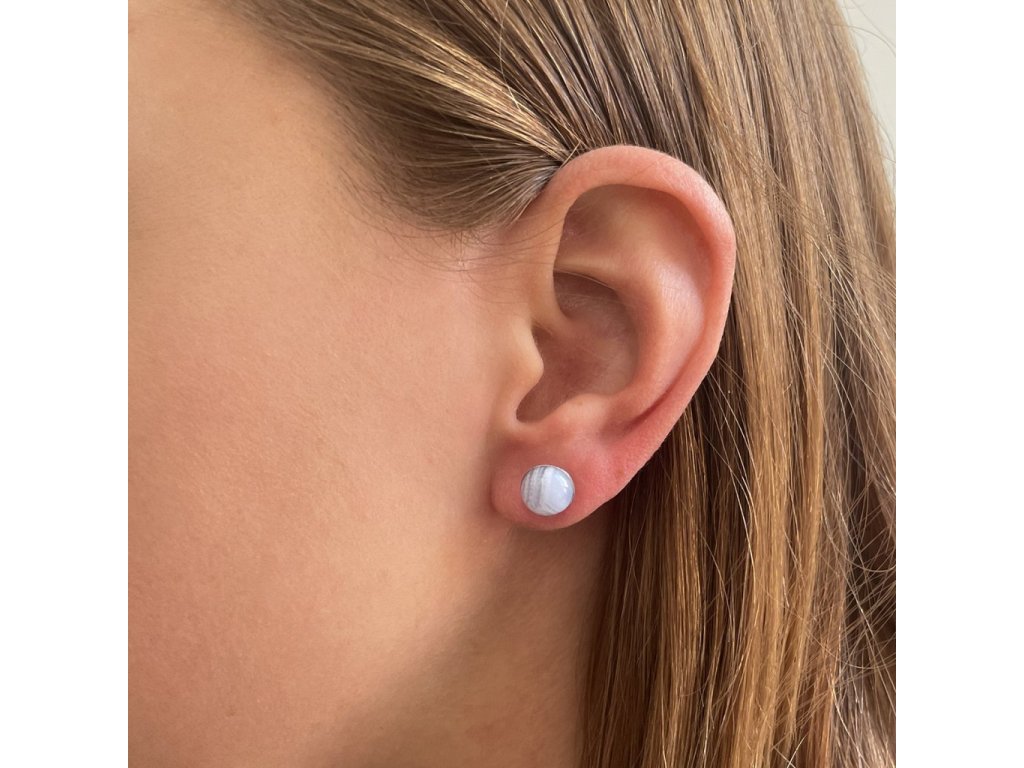 Strieborné náušnice kôstky s pravými minerálnymi kameňmi okrúhle 11491.3 Achát Blue Lace