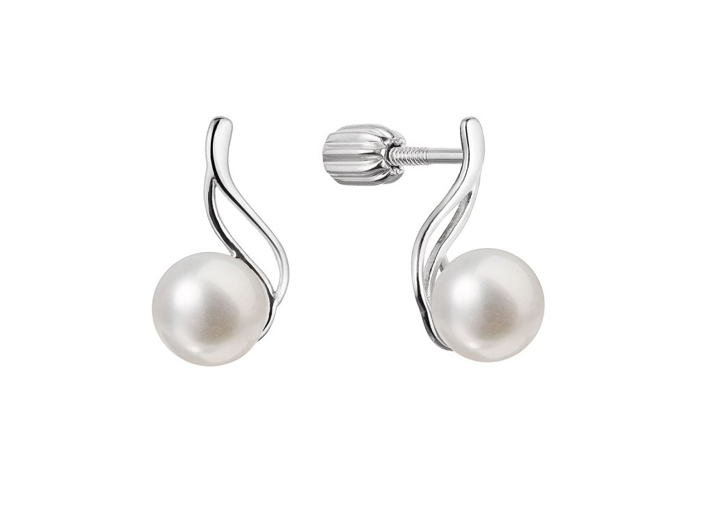 Strieborné náušnice kôstky s riečnou perlou biela 21102.1B