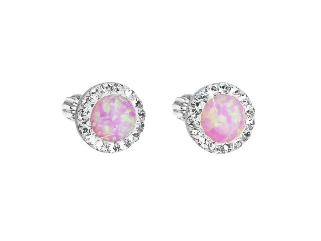 Náušnice typu kôstky 31317.1 sú vyrobené zo striebra rýdzosti 925/1000 vrátane povrchovej úpravy ródiom a je do nich zasadený okrúhly syntetický opál zdobený niekoľkými odtieňmi ružovej farby. Opál sa krásne trblieta a hádže rôzne farebné odlesky. Po obvode sú navyše okrúhle náušnice vysadené bielymi Preciosa krištáľmi. Náušnice sa zapínajú na balónik, ktorý ich spoľahlivo ochráni proti ich strate. Keďže do šperku nie je pridaný žiadny nikel , môžu ich s radosťou nosiť aj alergici.