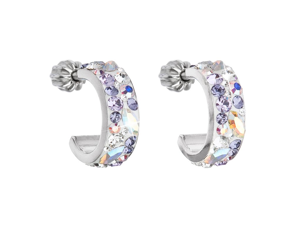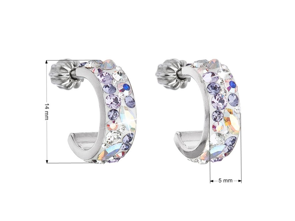 Náušnice 31118.3 violet v tvare polkruhu sú vyrobené zo striebra o rýdzosti 925/1000 s povrchovou úpravou ródiom a sú zdobené mnohými Swarovského krištáľmi v odtieňoch fialovej a bielej farby. Vďaka Swarovského krištáľom sa náušnice nádherne lesknú. Náušnice zapnete na skrutku, ktorá ich spoľahlivo ochráni proti nechcenej strate. Keďže do náušníc nie je pridaný nikel, môžu ich bez obáv nosiť aj alergici.