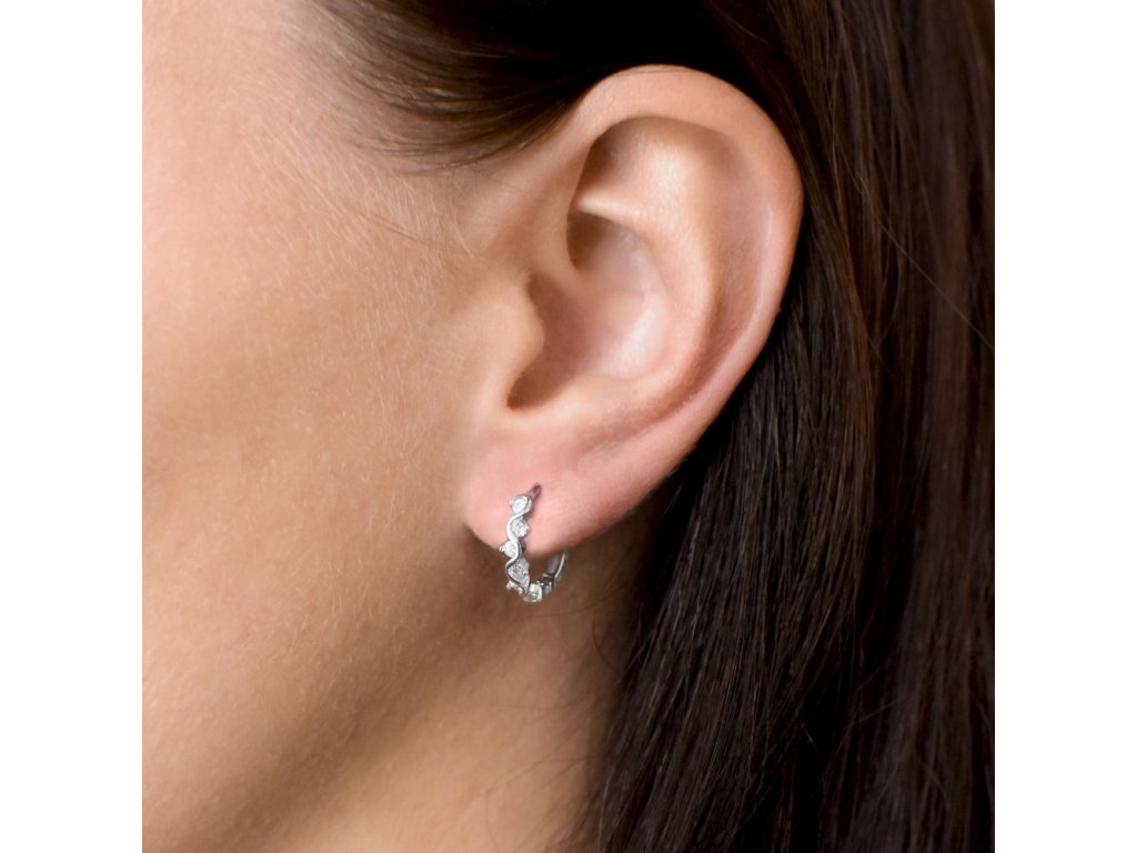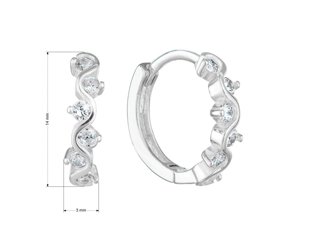 Kruhové náušnice 11244.1 tvoria striebro rýdzosti 925/1000, na ktorého povrchu je nanesené ródium. Ródium šperk ochráni proti nechceným zmenám vzhľadu - sčernaniu, zožltnutiu alebo poškriabaniu. Náušnice majú dĺžku 14 mm. Na kruhovej náušnici je umiestnených šesť bielych zirkónov, medzi ktorými sa prepletá strieborný prúžok.