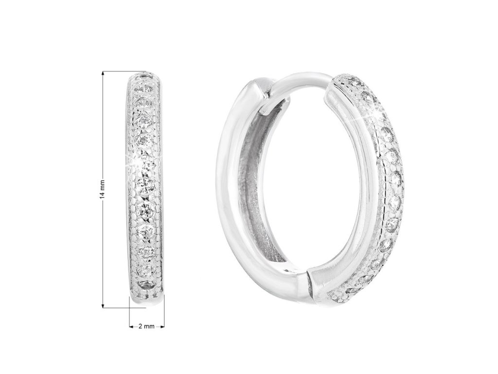 Strieborné náušnice kruhy so zirkónom v bielej farbe 11316.1