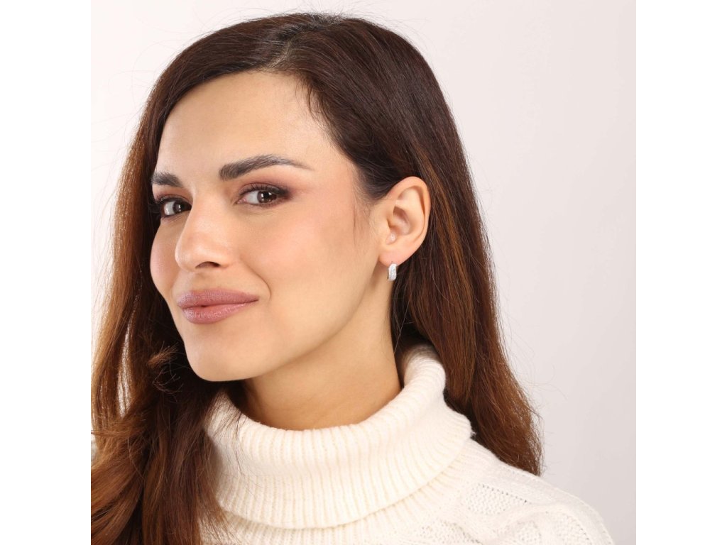 Kruhy vyrábame zo striebra rýdzosti 925/1000, ktorého povrch je upravený ródiom. Ródium šperk chráni pred sčernením, zažltnutím alebo poškrabaním. Kruhy sú ozdobené malinkými zirkónmi v bielej farbe.